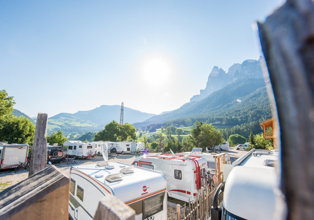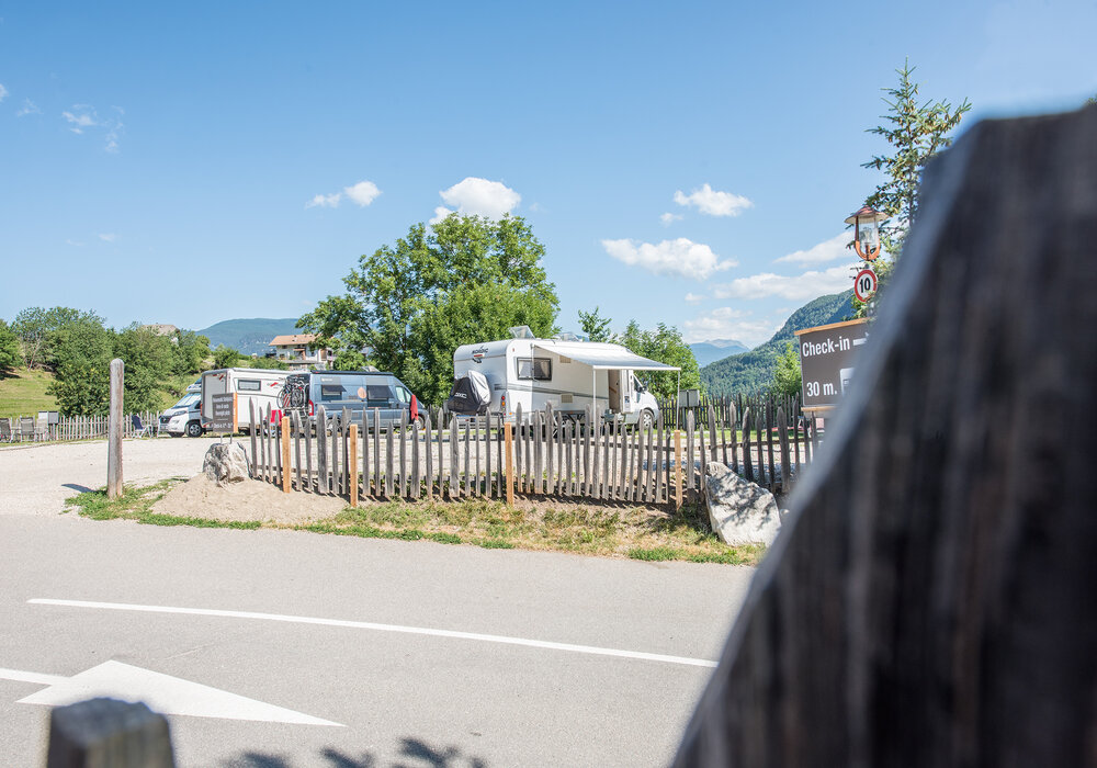La nostra area di sosta per camper, soggetta a pagamento e registrazione, si trova in una zona separata prima della sbarra, su un terreno pianeggiante e ghiaioso.