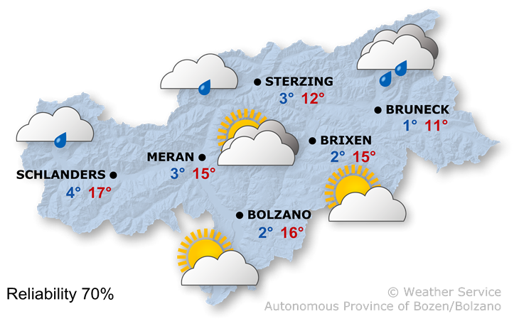Maximum temperatures between 11° and 17°. Even higher values in the presence of the Föhn wind.