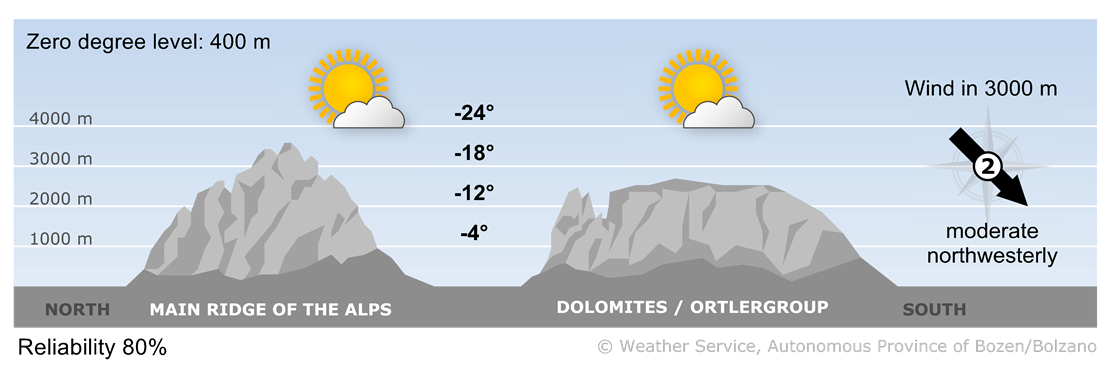 A weak disturbance will reach the Alps with a north-westerly high-altitude current.