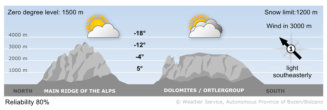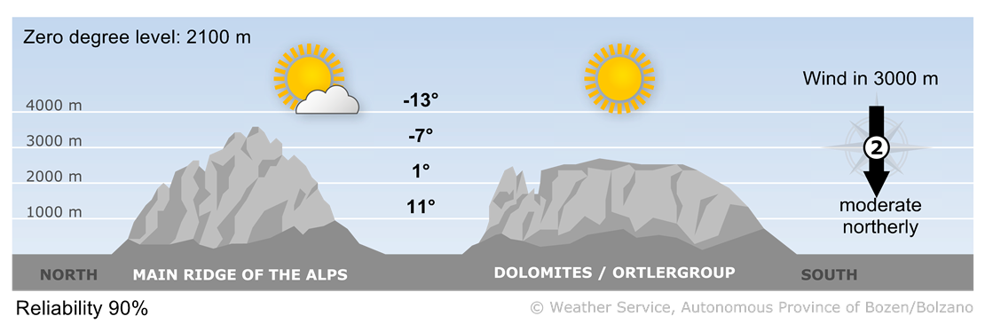 On Friday, strong to gale-force northerly winds will persist. Along the border with North Tyrol, a few snow showers will continue, while further south there will be a mix of sunshine and cloud.
