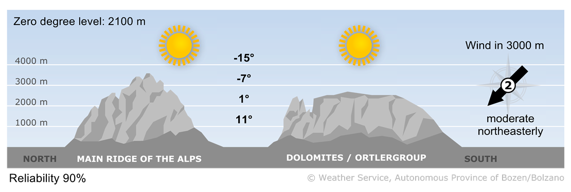 The sun is shining across South Tyrol, and the sky is mostly clear.