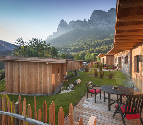 Il nostro villaggio turistico è immerso nella splendida natura del Parco Naturale Sciliar-Catinaccio. La sera, l'imponente vista sullo Sciliar offre un magico gioco di colori mentre le Dolomiti si tingono di rosso. Godetevi questo spettacolo unico, rilassandovi dalla vostra piazzola, dalle eleganti Dolomites Lodges o dai nostri appartamenti accoglienti.