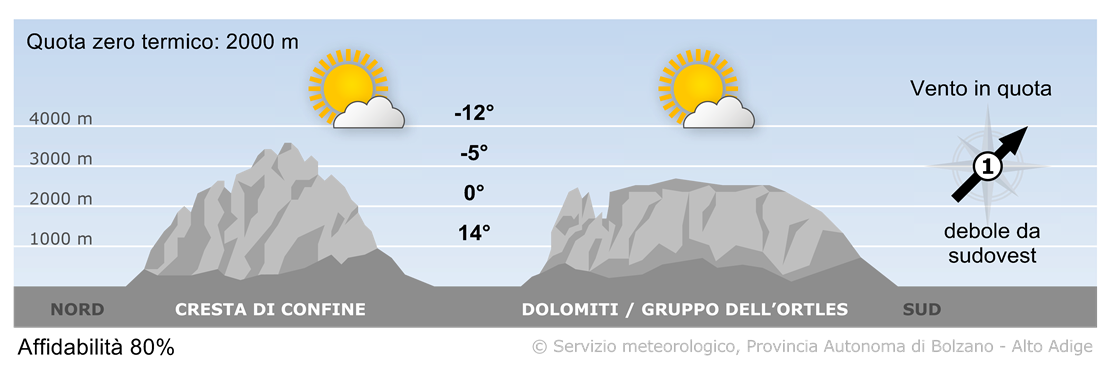 Martedì il tempo sarà in prevalenza soleggiato, salvo annuvolamenti a tratti sulla cresta di confine. Nelle valli soffierà ancora il Föhn.