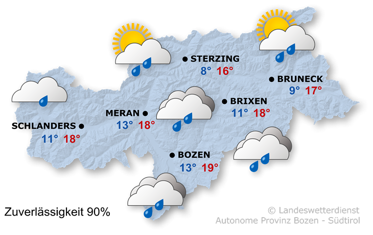 Die Temperaturen gehen zurück und liegen mit 18° bis 22° im jahreszeitlichen Mittel.