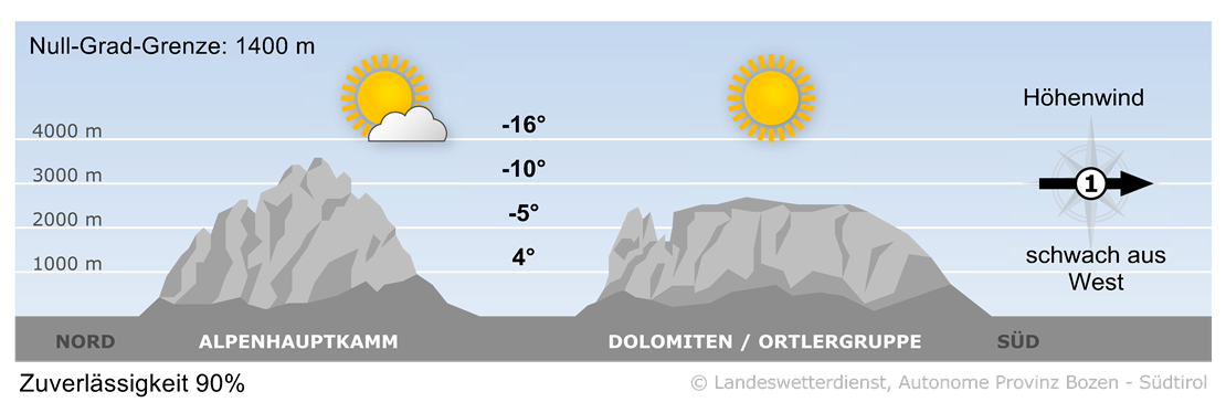 Am Nachmittag steigen die Temperaturen auf 3° im Wipptal bis 12° im Etschtal und Unterland.