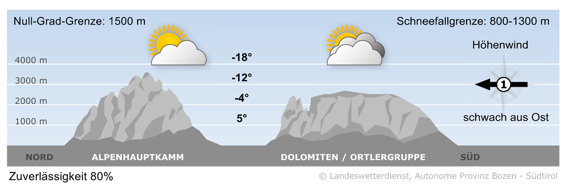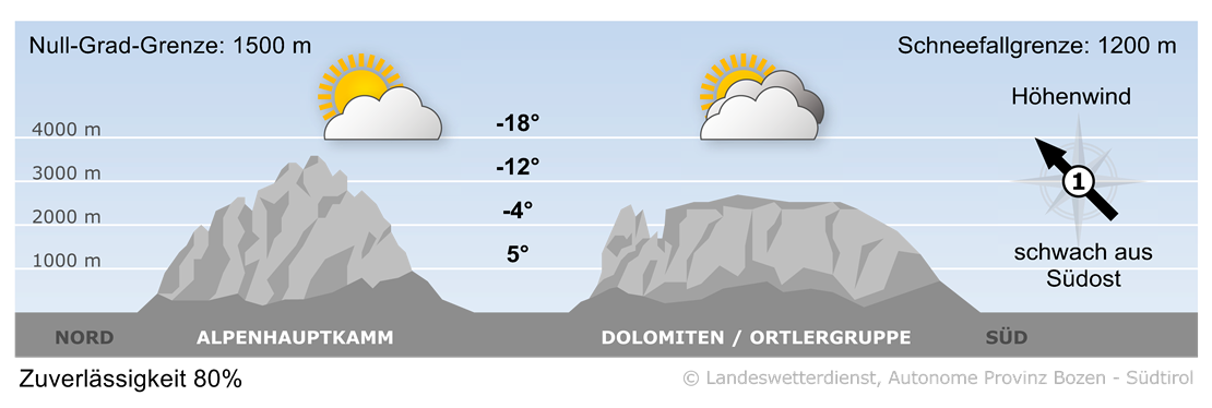 Der Mittwoch beginnt sonnig. Im Tagesverlauf nehmen die Wolken zu und am Abend sowie in der Nacht auf Donnerstag bringt eine markante Kaltfront verbreitet Niederschläge. Die Schneefallgrenze sinkt unter 1000 m.