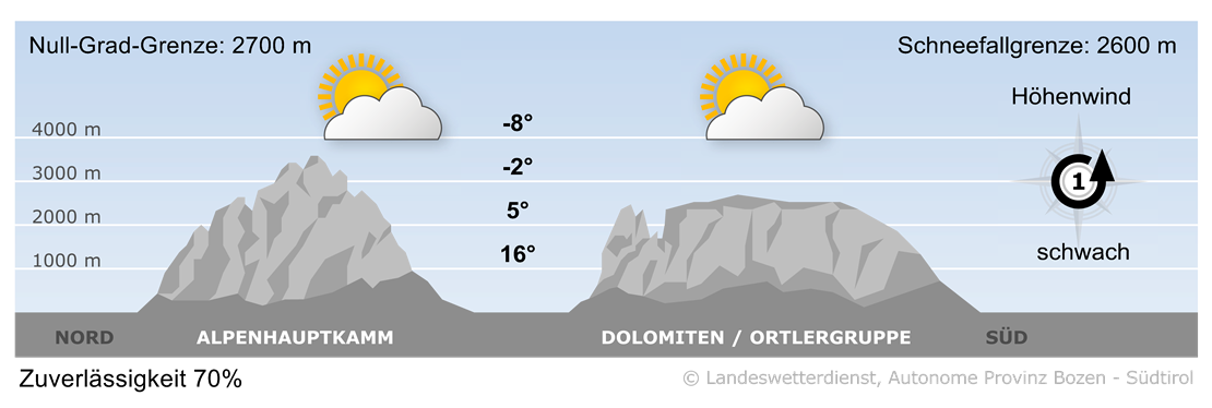 Der Dienstag bringt wieder recht sonniges Wetter mit ein paar Wolken.