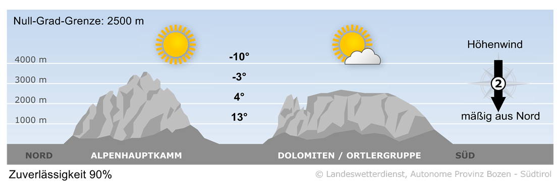 Am Nachmittag geht es im ganzen Land sonnig weiter, an den Berghängen halten sich ein paar harmlose Wolken.